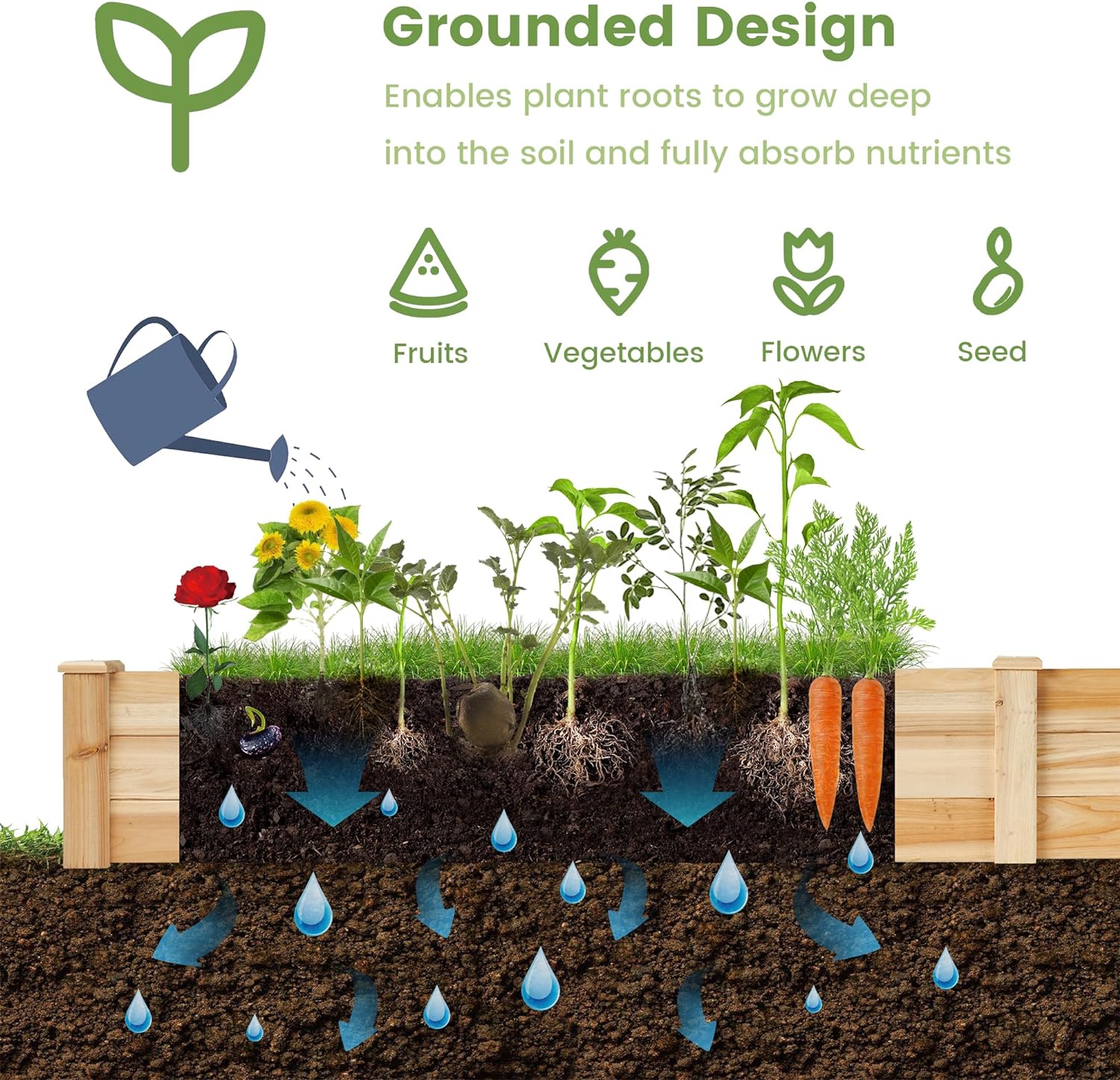 - 【Deep Planter Raised Beds】 The wooden raised garden bed offers exceptional depth. This means deeper root growth, ensuring that your plants can access vital nutrients and water for optimal health and productivity