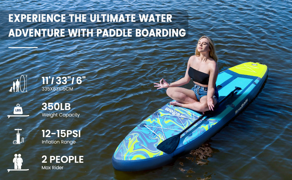 - 【Detalhes do produto e atendimento ao cliente】 Com tamanho de 11' x 33" x 6", as pranchas infláveis para adultos podem acomodar 2 adultos, e famílias com crianças ou animais de estimação, pessoas grandes, pessoas de grande porte, que carregam até 400 libras. Se você tiver alguma dúvida, forneceremos soluções em 24 horas
